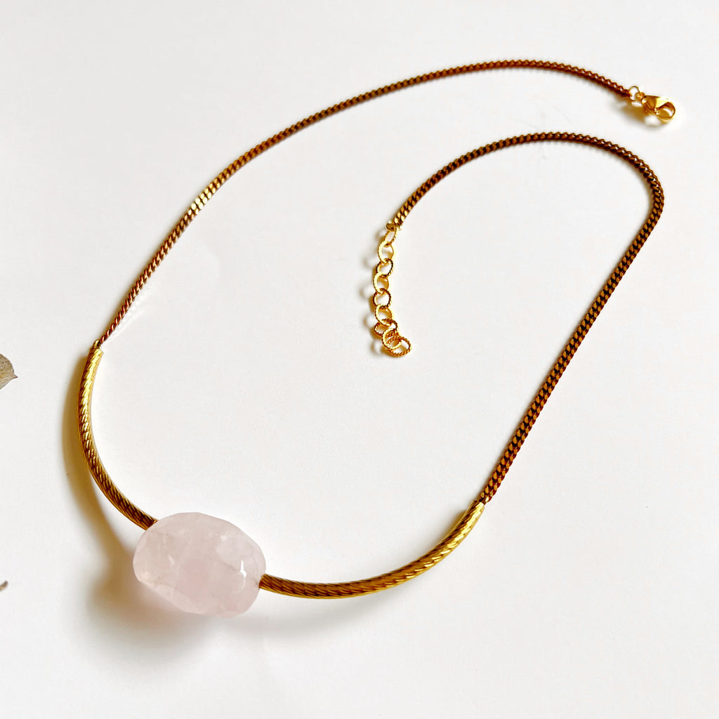 Chloe Collar: Pink Quartz (19 inches plus adjuster chain)