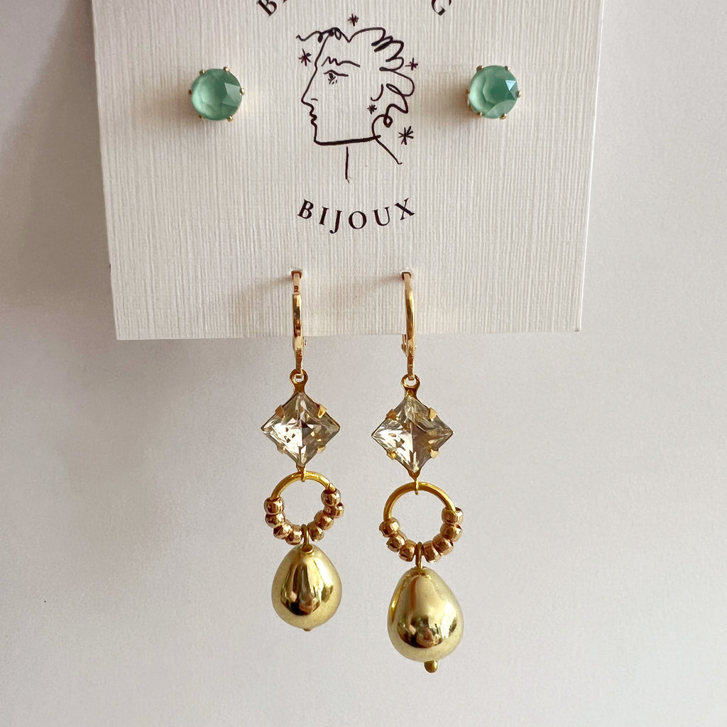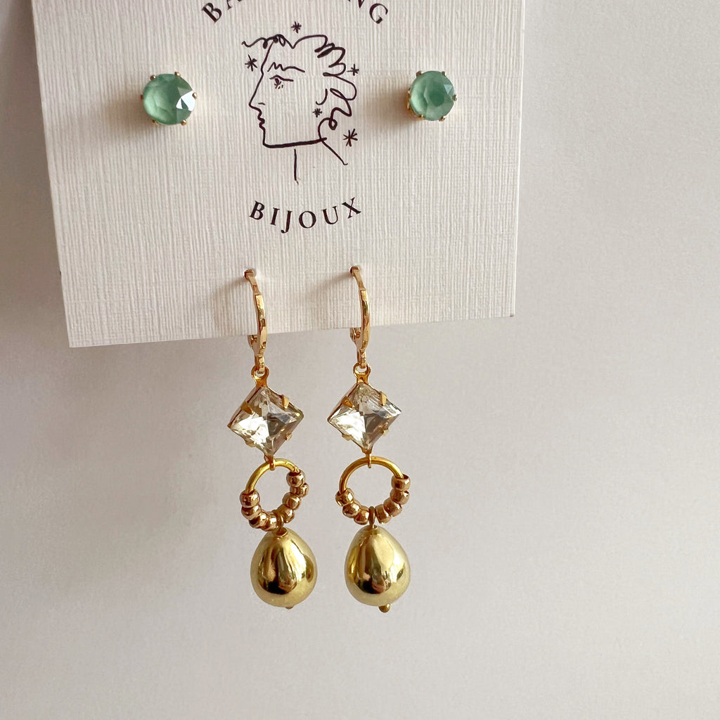 All earrings in this series are made from vintage materials and are therefore quite limited in run and style.