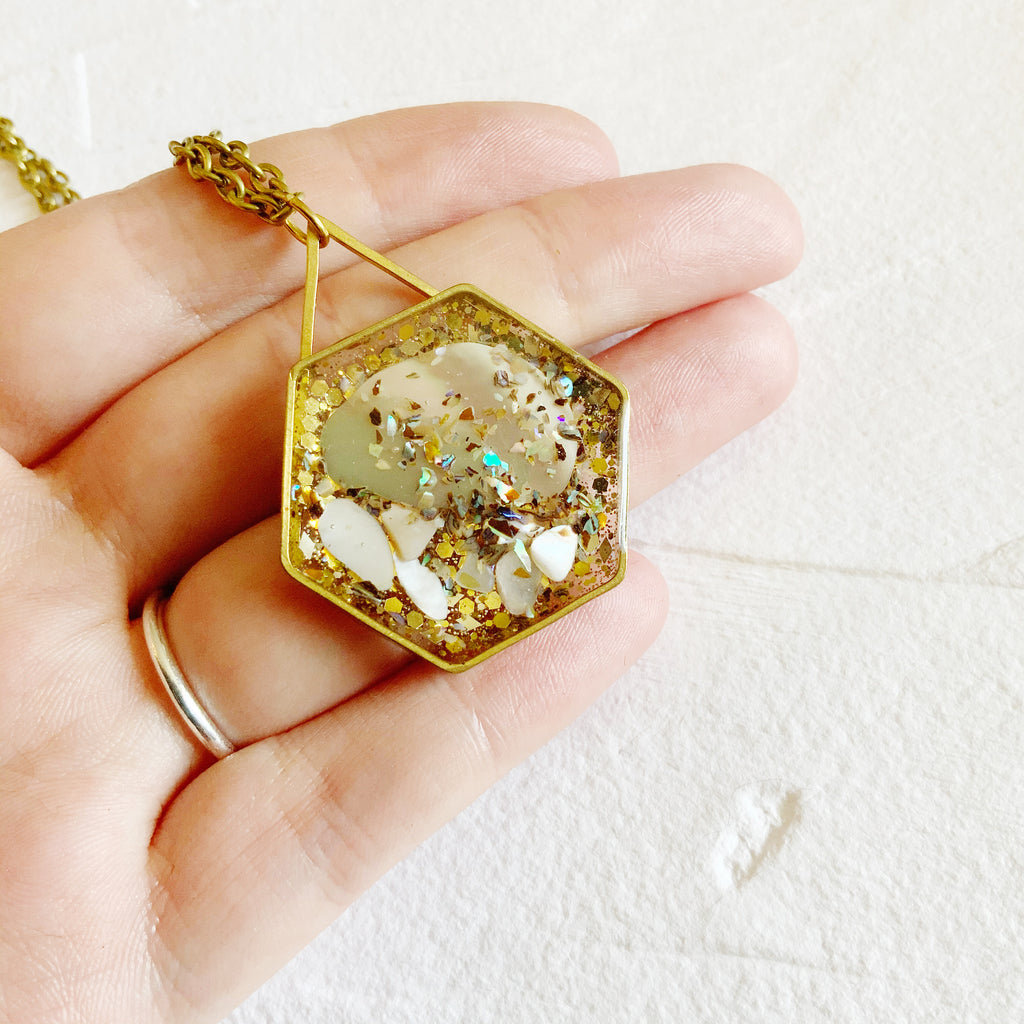 Handmade from Polymer Clay, Eco-resin, and Fair-Trade Mica Pigments.