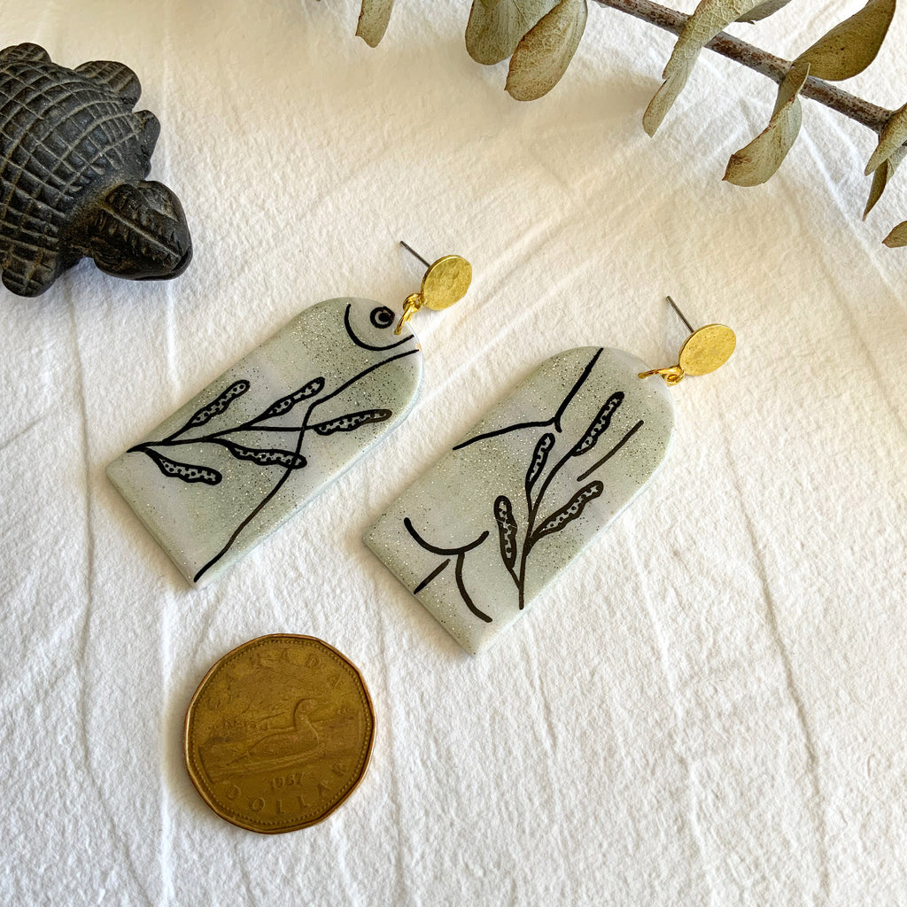 Store out of direct or bright light and humidity when not being worn. Buff metal with a gentle brass polishing cloth. To clean the surface of your hand painted piece gently rinse in diluted dish soap and water. Pat carefully to dry. Like all handmade jewelry please avoid harmful chemicals which might oxidize your piece, for example hairspray and sunscreen applied directly to the surface of your piece. Put your earrings on after aerosols.