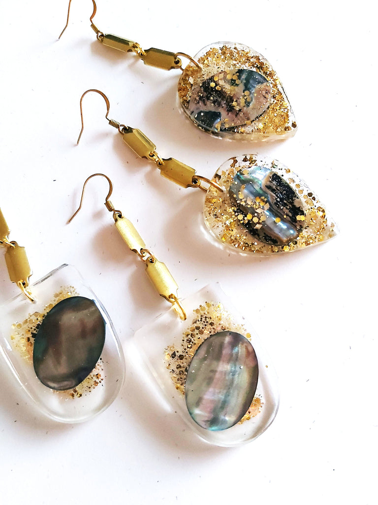 High-quality handmade earrings made from eco-resin, and various ethically sourced pigments.