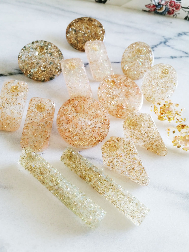 High-quality handmade earrings made from eco-resin, and various ethically sourced pigments.