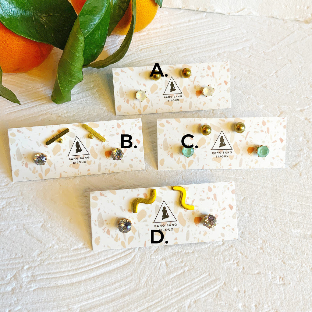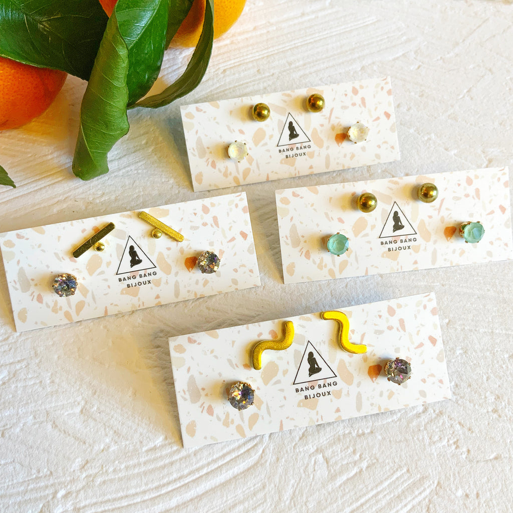 These can be added to any of our shield earrings or worn as pictured as simple, sparkly studs.