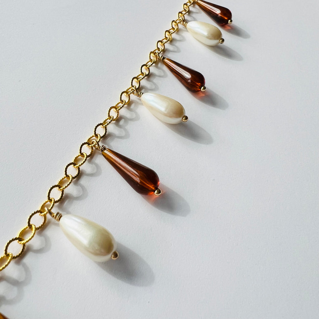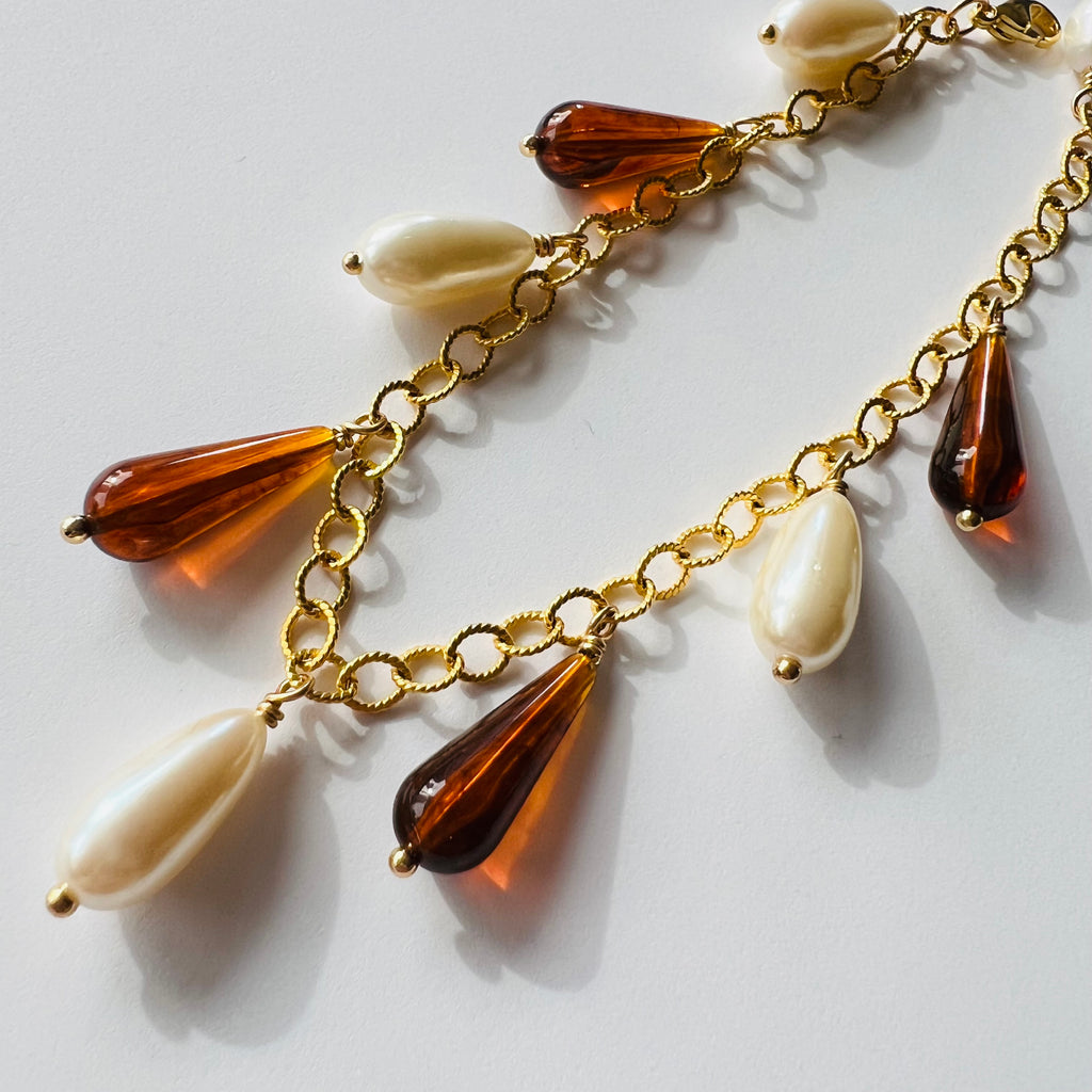 These unique vintage bead charms hang from a high-quality 18Kt Gold Plated Steel chain sourced from a deadstock warehouse. All materials are made prior to 1970!