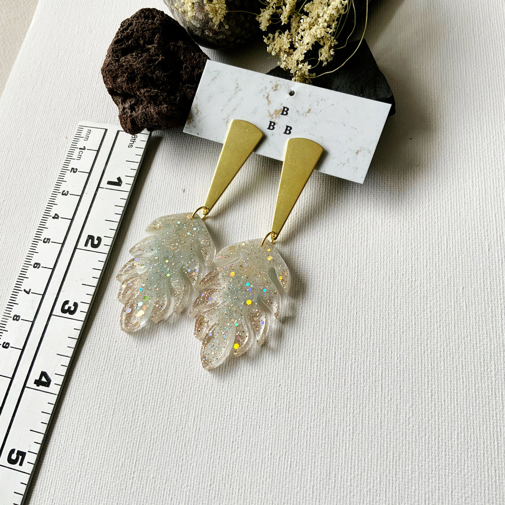 Made from eco-resin, crushed seashells, vintage glitter, and glimmering brass.