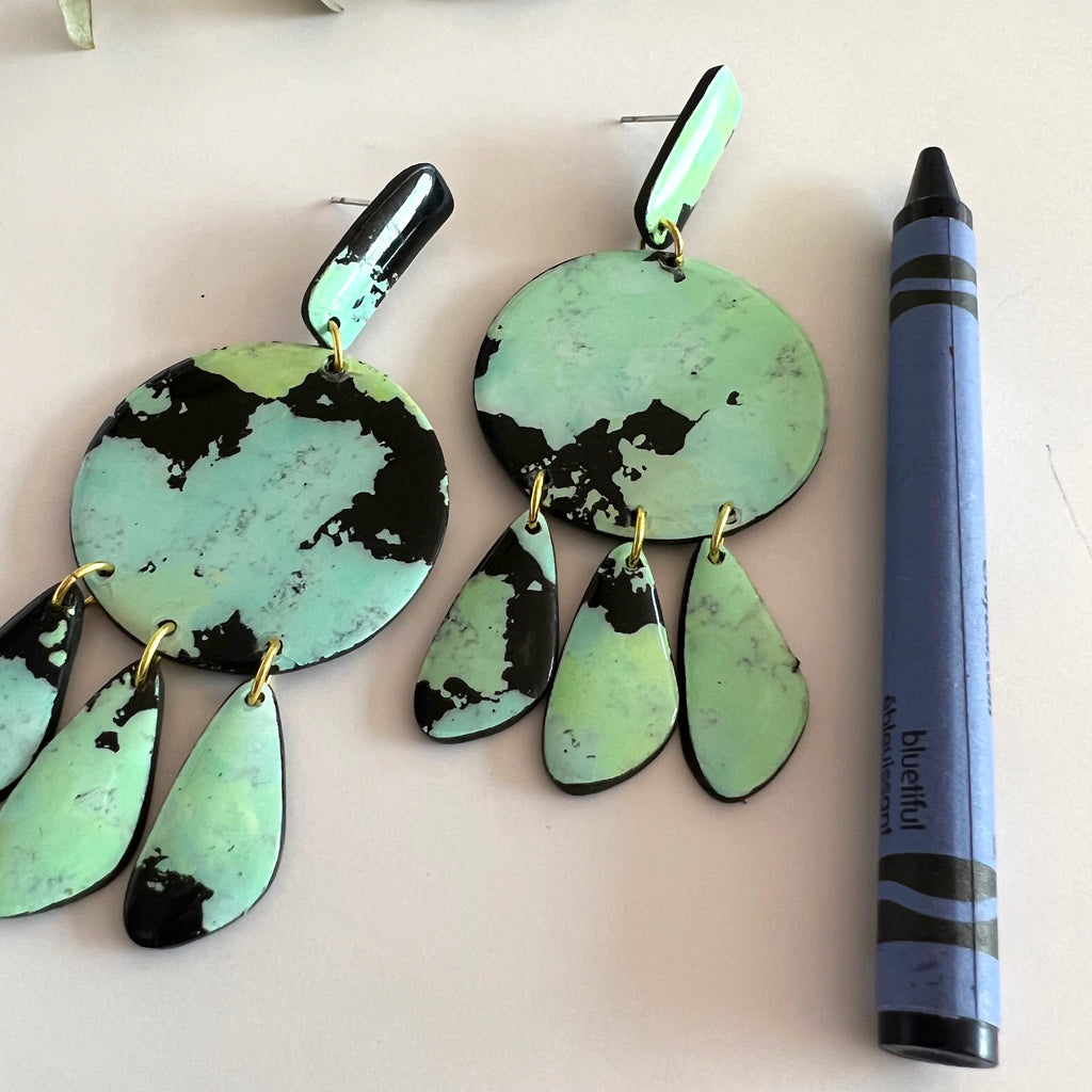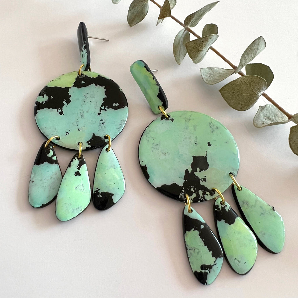 The very definition of slow-fashion. Each piece is made entirely by hand over a period of 4 days. Carefully painted and sealed with eco-resin.