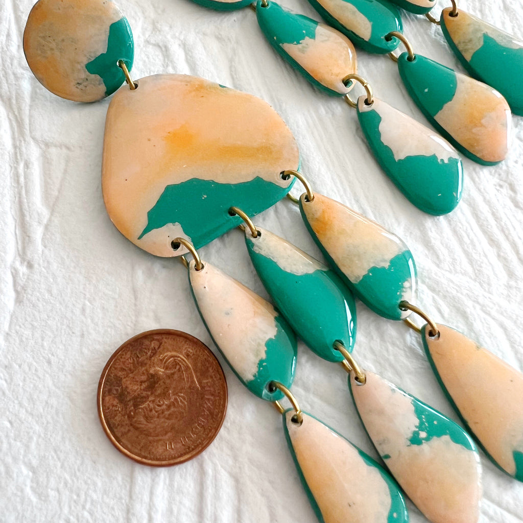 The very definition of slow-fashion. Each piece is made entirely by hand over a period of 4 days. Carefully painted and sealed with eco-resin.