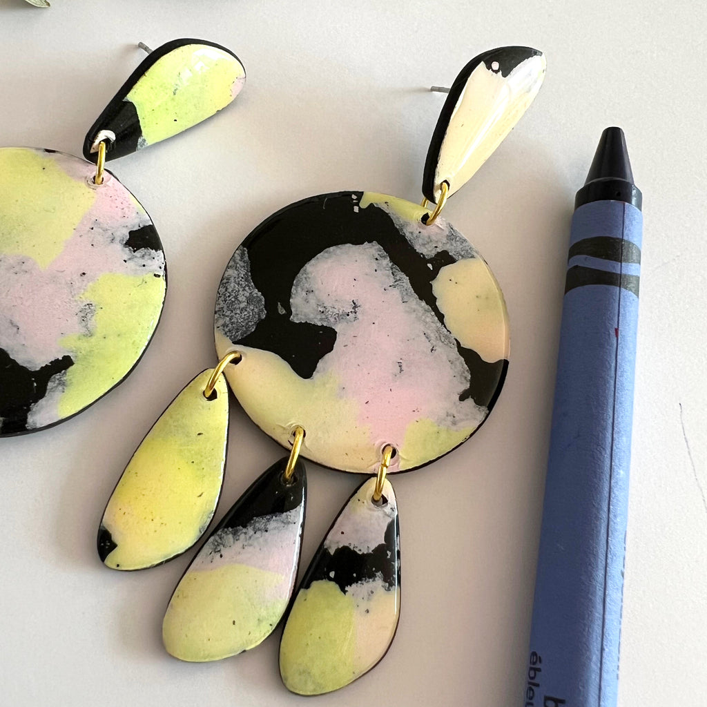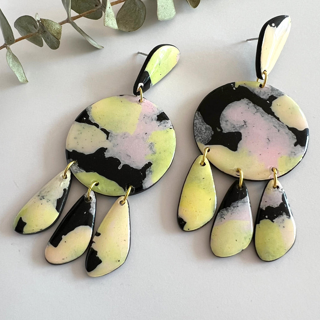 The very definition of slow-fashion. Each piece is made entirely by hand over a period of 4 days. Carefully painted and sealed with eco-resin.