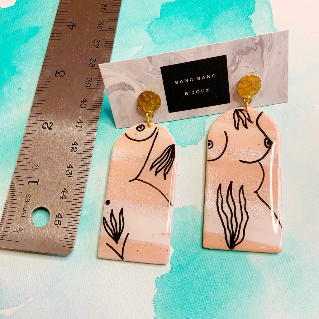 Each pair is entirely handmade from Polymer Clay, Acrylic Paint, and Fair-trade Mica. Finished with brilliant eco-resin.