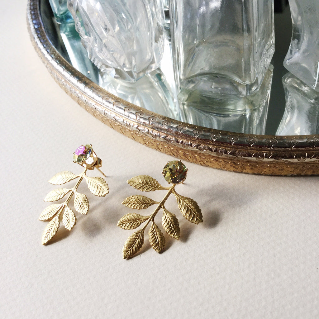 Floral Ear Shields + Swarovski Crystals set in Gold Plated Surgical Steel Studs.