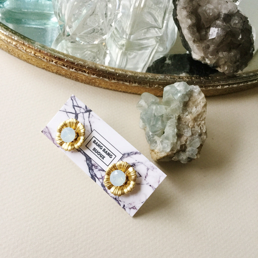 Floral Ear Shields + Swarovski Crystals set in Gold Plated Surgical Steel Studs.
