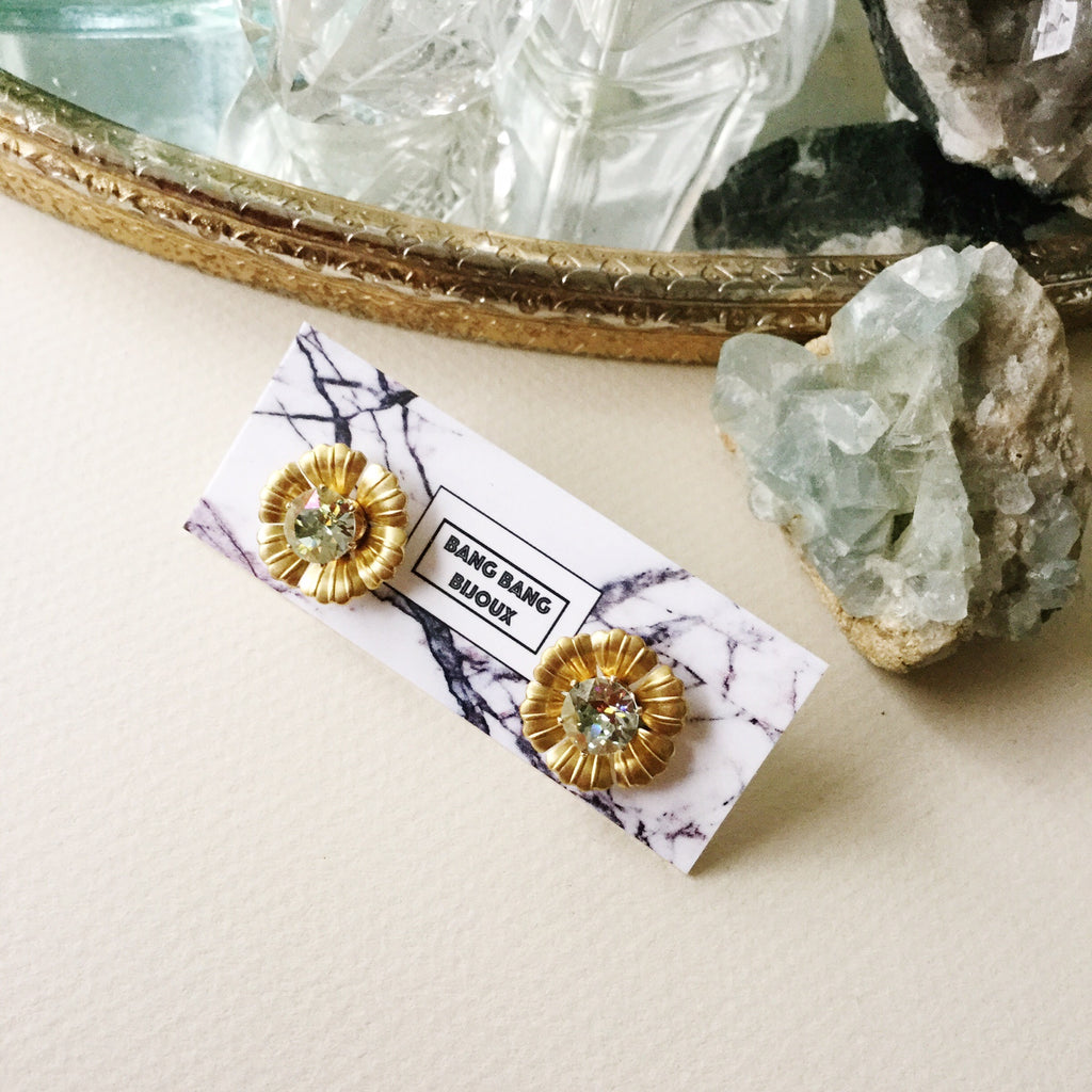 Floral Ear Shields + Swarovski Crystals set in Gold Plated Surgical Steel Studs.
