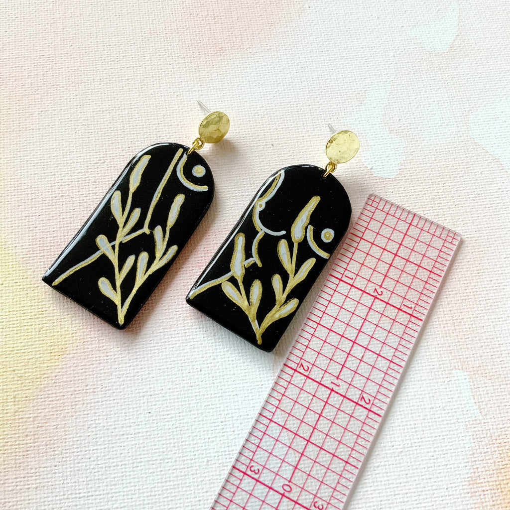 To preserve the quality of your earrings please store away from humidity and direct sunlight when not being worn. Natural oxidization occurs to brass over time, so a gentle buff from a polishing cloth should shine them up nicely. To clean the hand-painted portion gently rinse with shampoo and cool water. Dry gently.