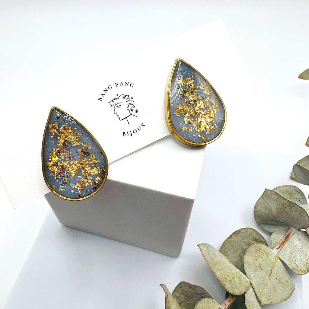 Handmade Resin Studs. Created from eco-resin, fair-trade mica, and various vintage glitters and colouring.