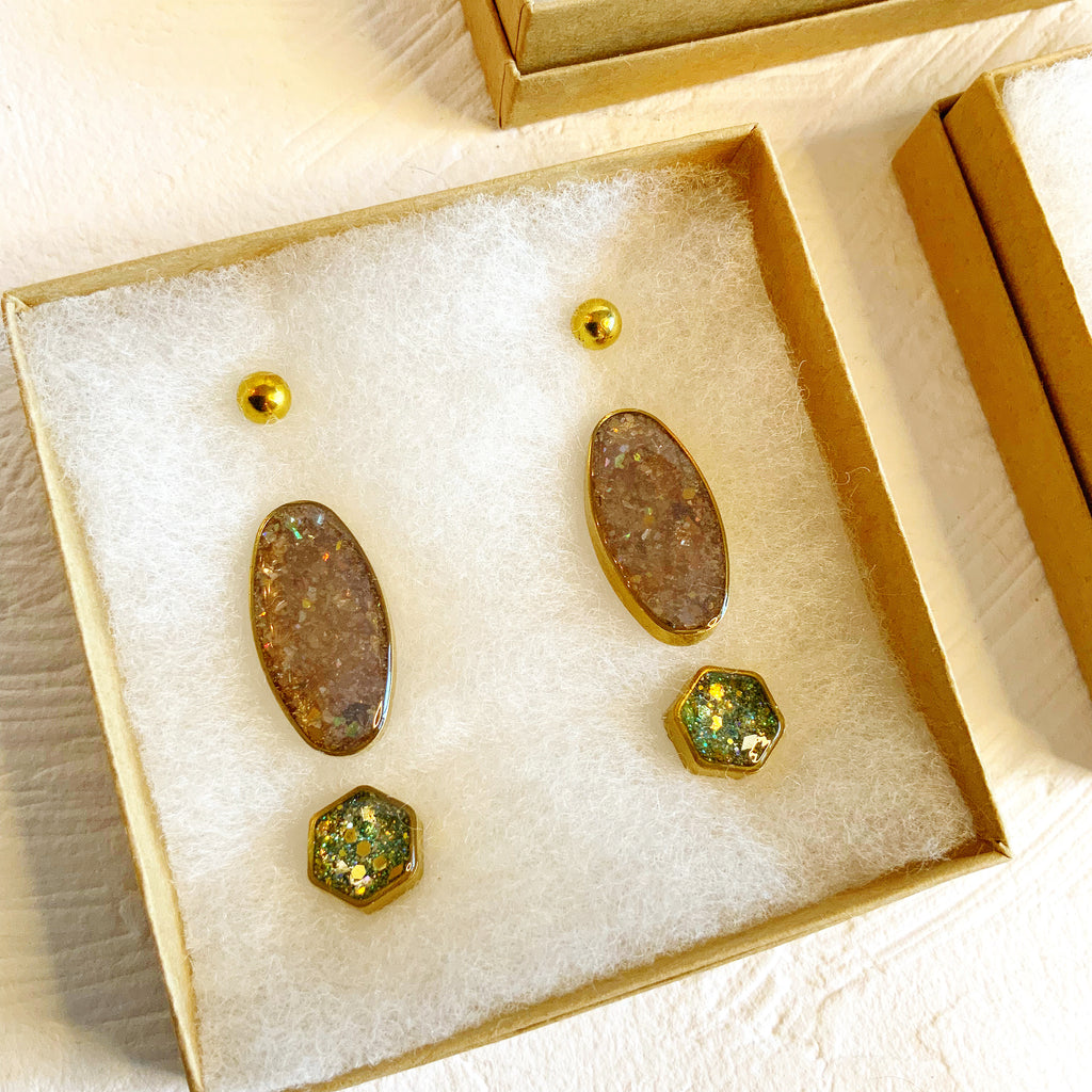 Created from Fair-Trade Mica, Glitter, Eco-Resin, and various beach finds!