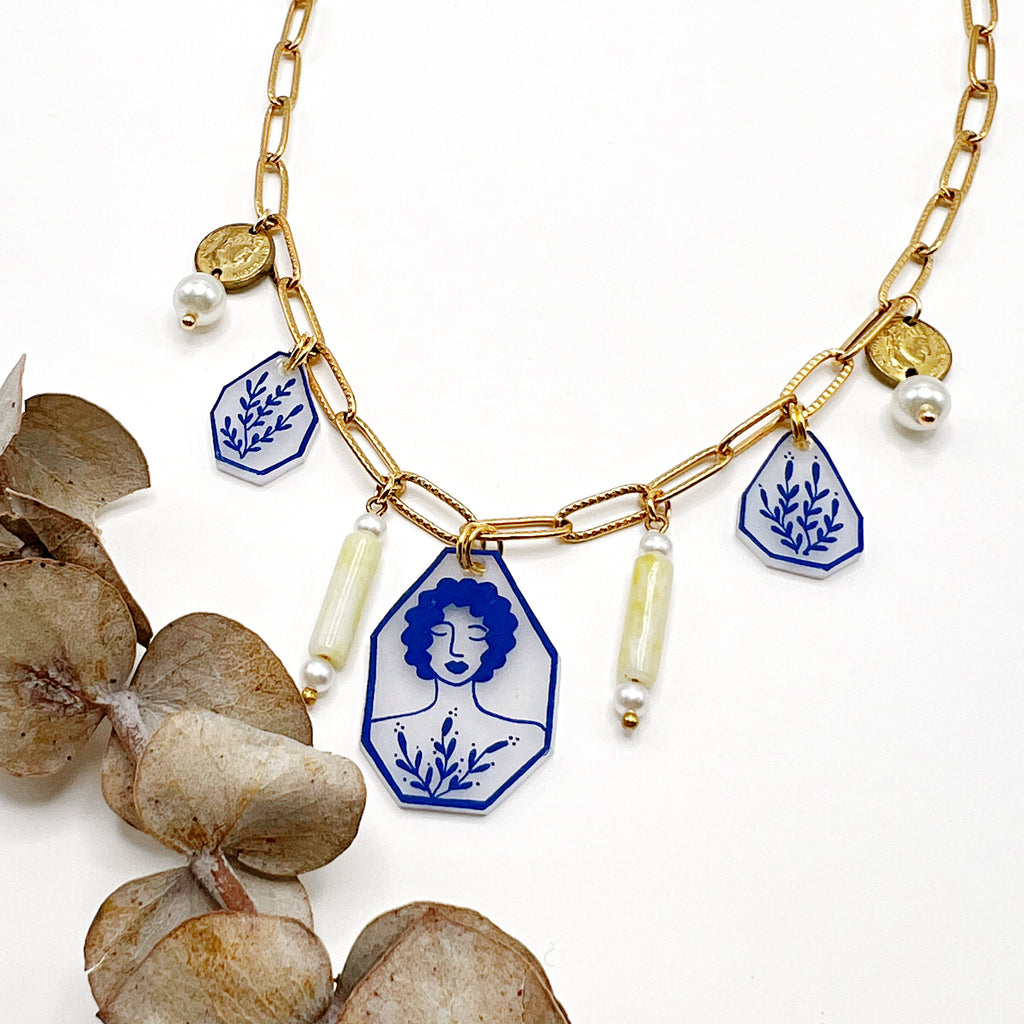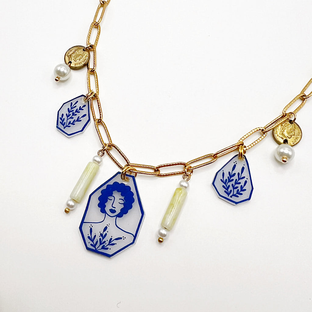 Each illustrated charm is painted entirely by hand on acrylic! All beads are vintage, bold, and beautiful to compliment the vivid hues of your charms!