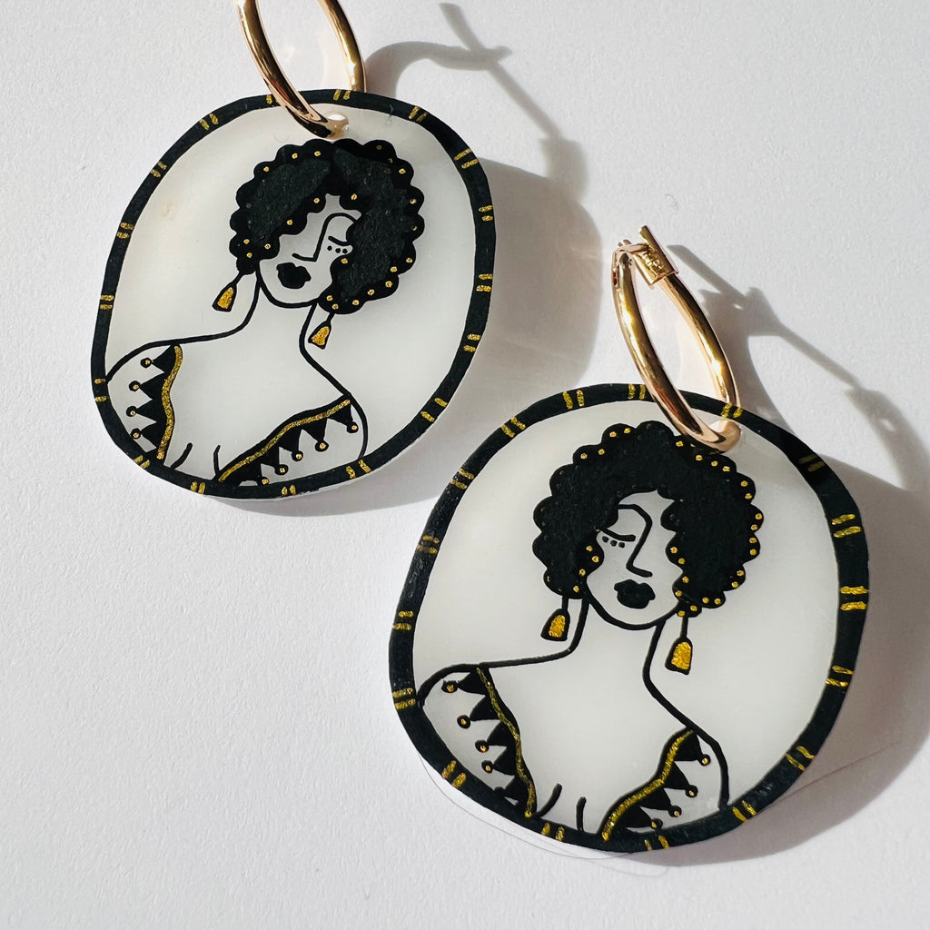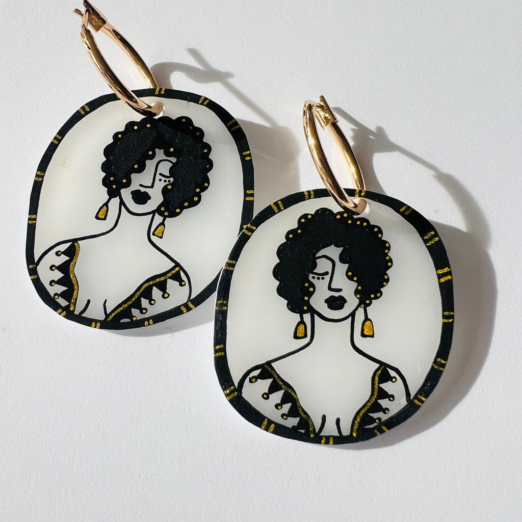 Each pair is painted entirely by hand on acrylic! All beads are vintage, bold, and beautiful to compliment the vivid hues of your artsy charms!
