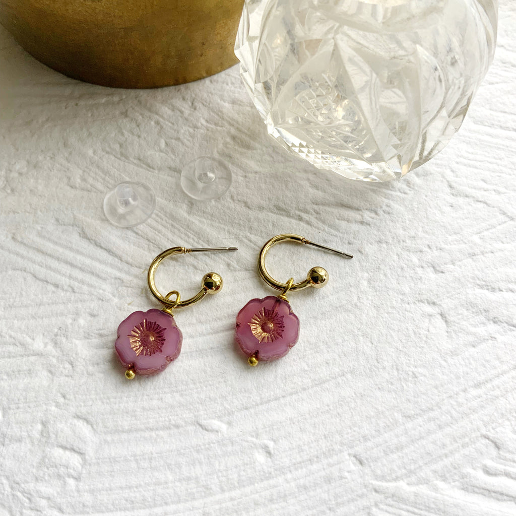 Pretty vintage charms sold as a pair. These tiny flowers are sold with the hooks pictured as they are a tiny fit.