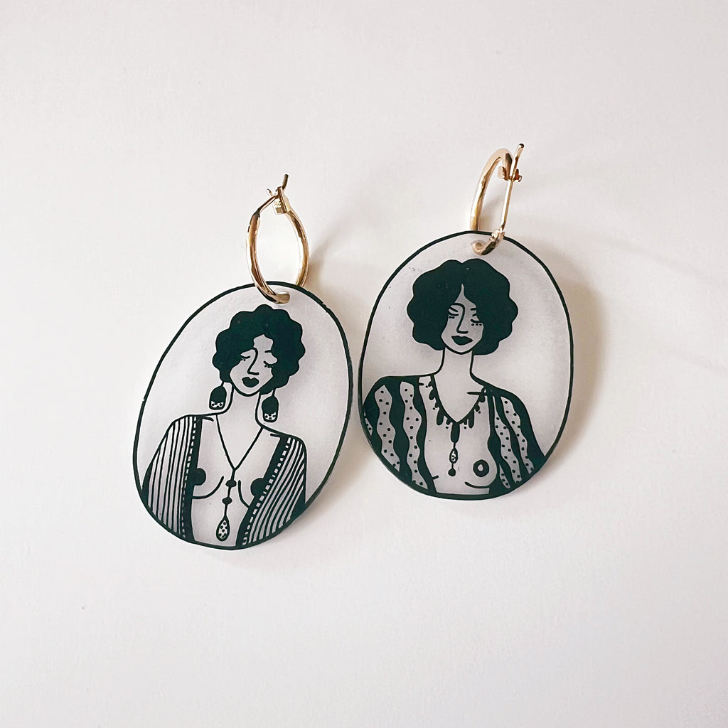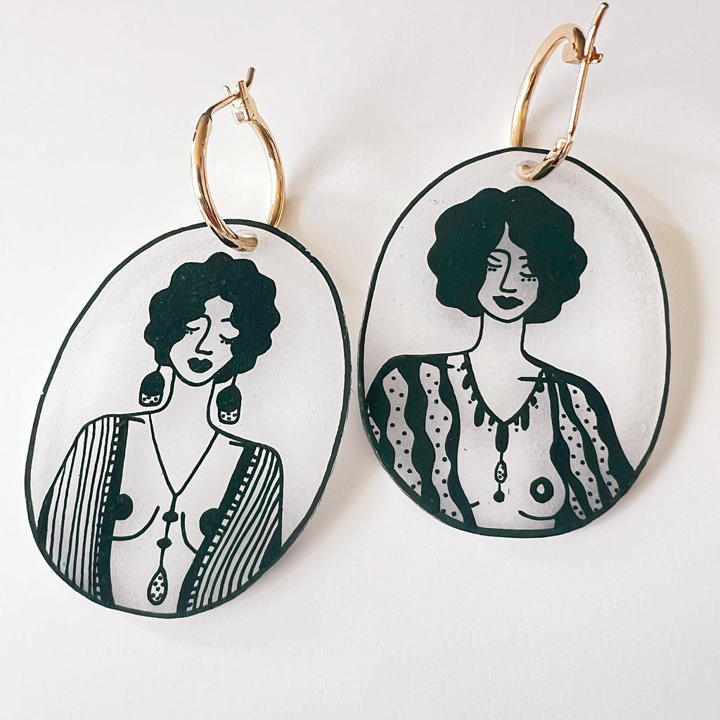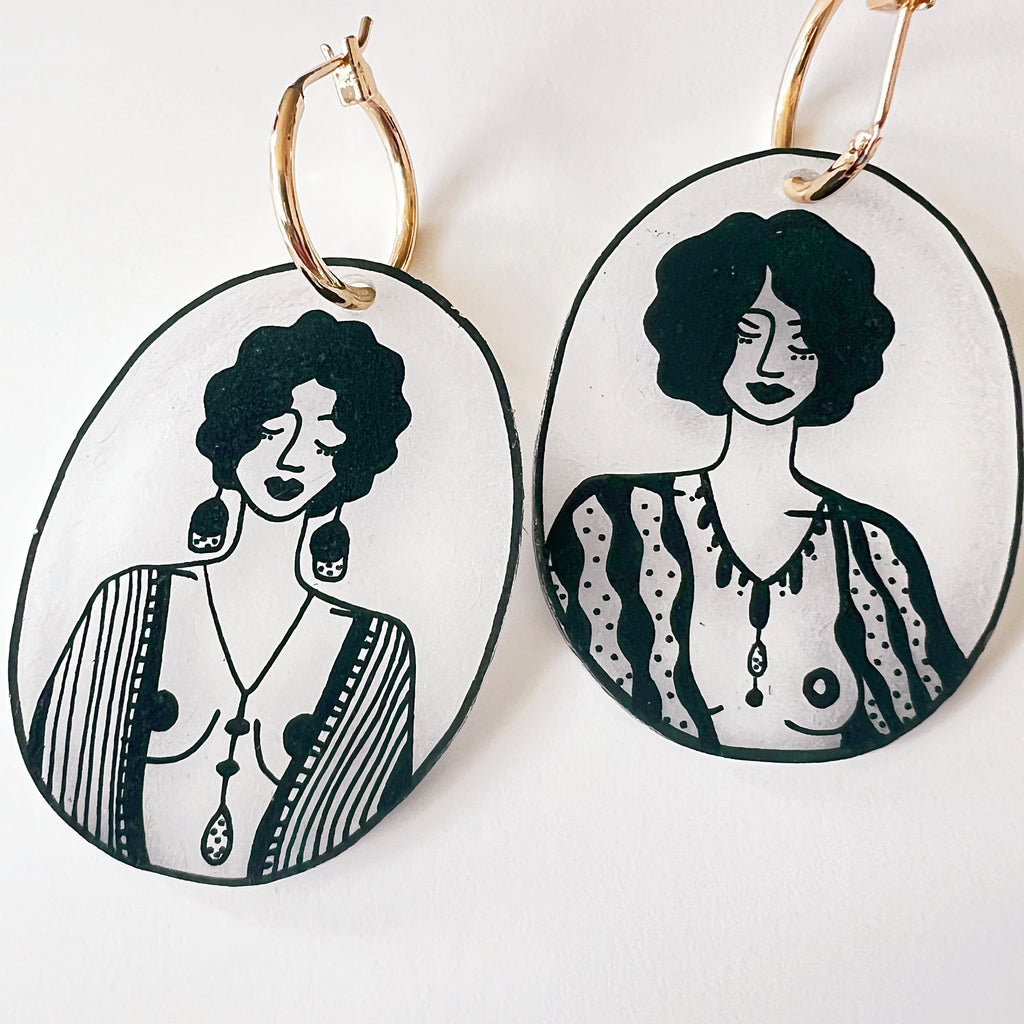 Please give these pieces extra love. They are hand painted and not mass produced in any way. Bling out as the last step of your routine to avoid hairsprays and products which might damage these lovingly designed wares.
