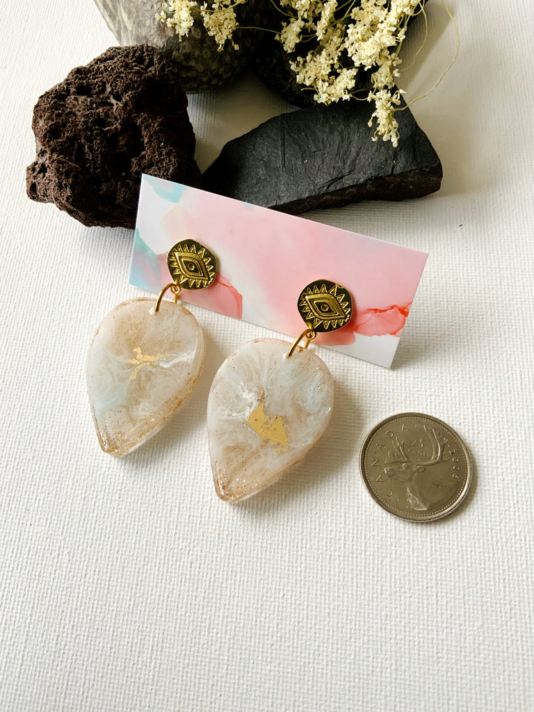 Made from eco-resin, crushed seashells, vintage glitter, and glimmering brass.