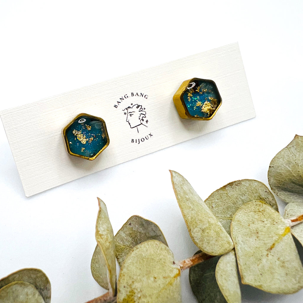 Handmade Resin Studs. Created from eco-resin, fair-trade mica, and various vintage glitters and colouring.
