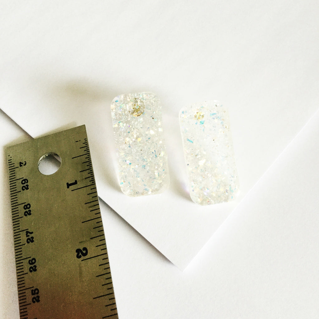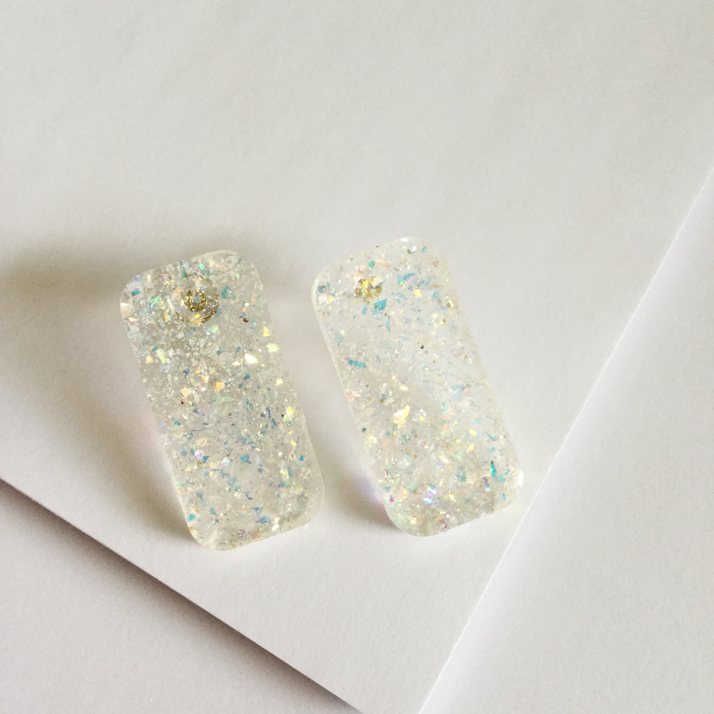 Made from Eco-Resin, Acrylic, Corrugated Brass, and Surgical Steel Posts. Lightweight and comfortable to wear.