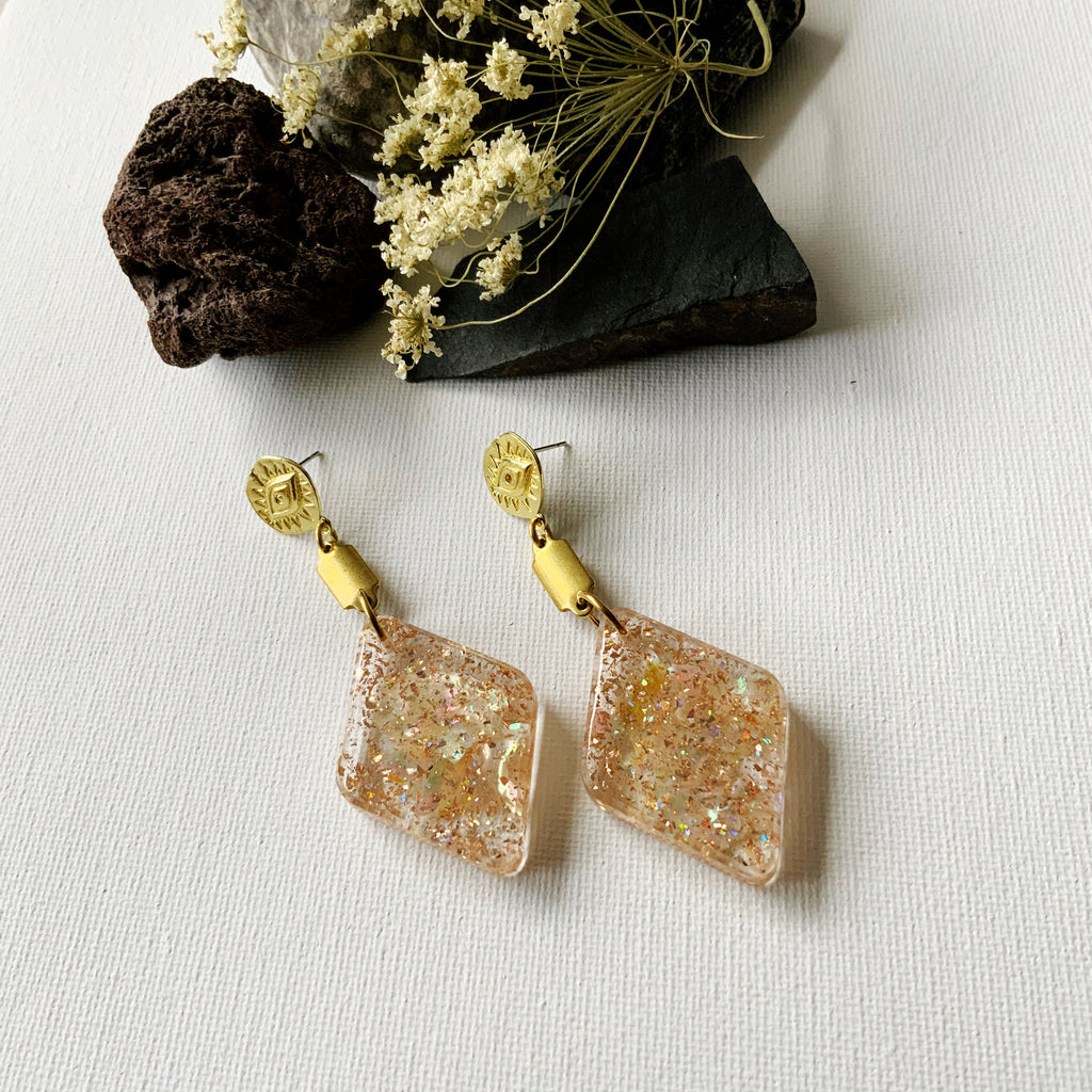 Made from eco-resin, crushed seashells, vintage glitter, and glimmering brass.