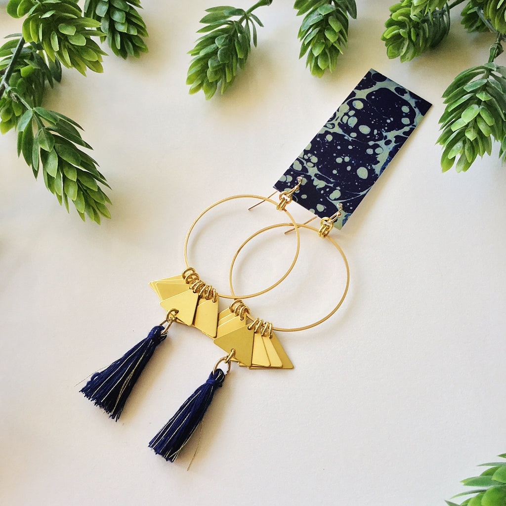 Luminous brass, and cotton tassels make for the perfect lightweight summer earrings. Big, bold, and beautiful.