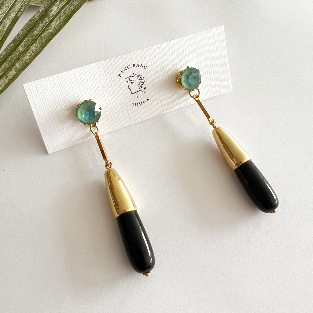 All earrings in this series are made from vintage materials and are therefore quite limited in run and style.